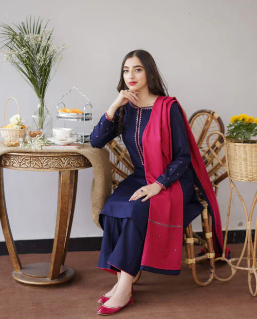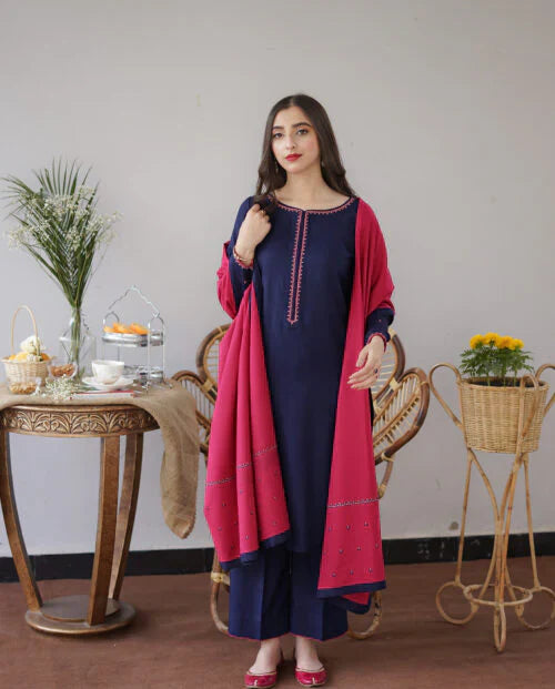 Aisling Dhanak 3PC Embroidered With Dhanak Embroidered Shawl-158