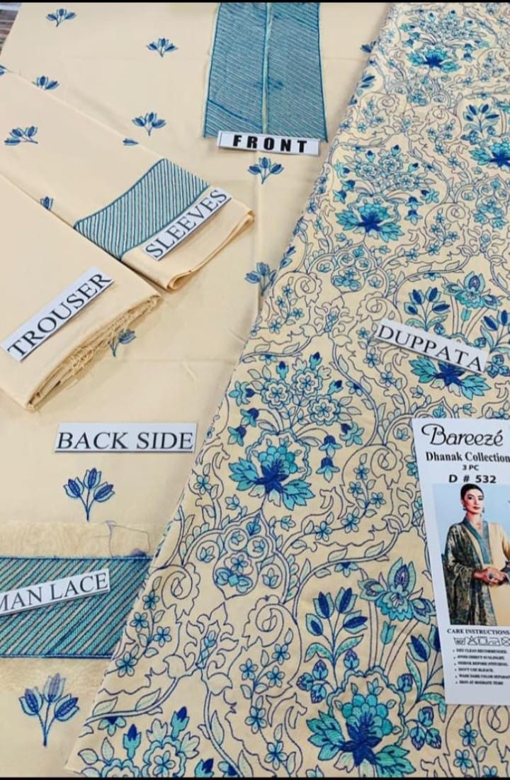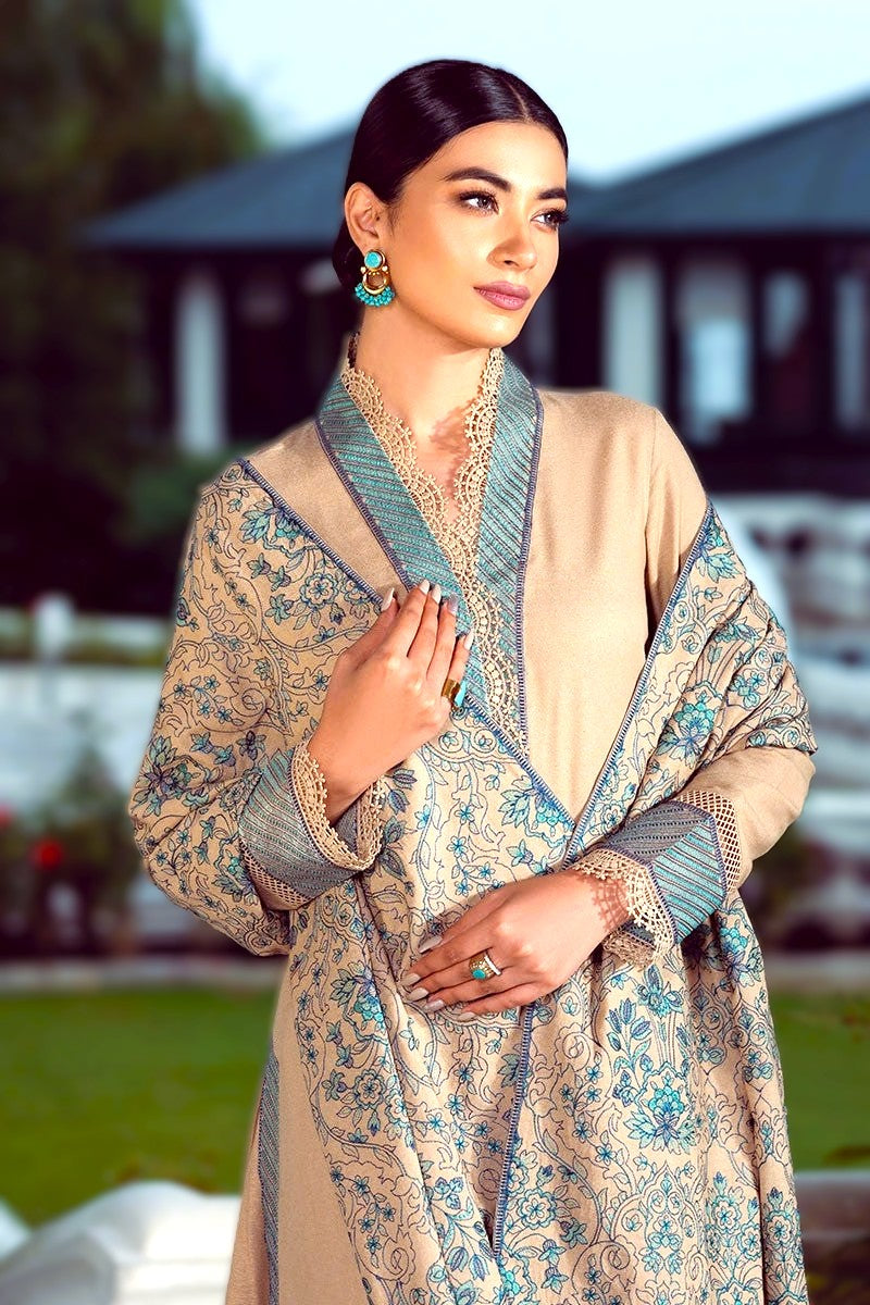 A premium-quality Bareeze Dhanak 3PC embroidered suit, designed with elegant winter tones and detailed threadwork. This outfit offers a perfect blend of comfort and luxury, ideal for winter wear and festive gatherings.