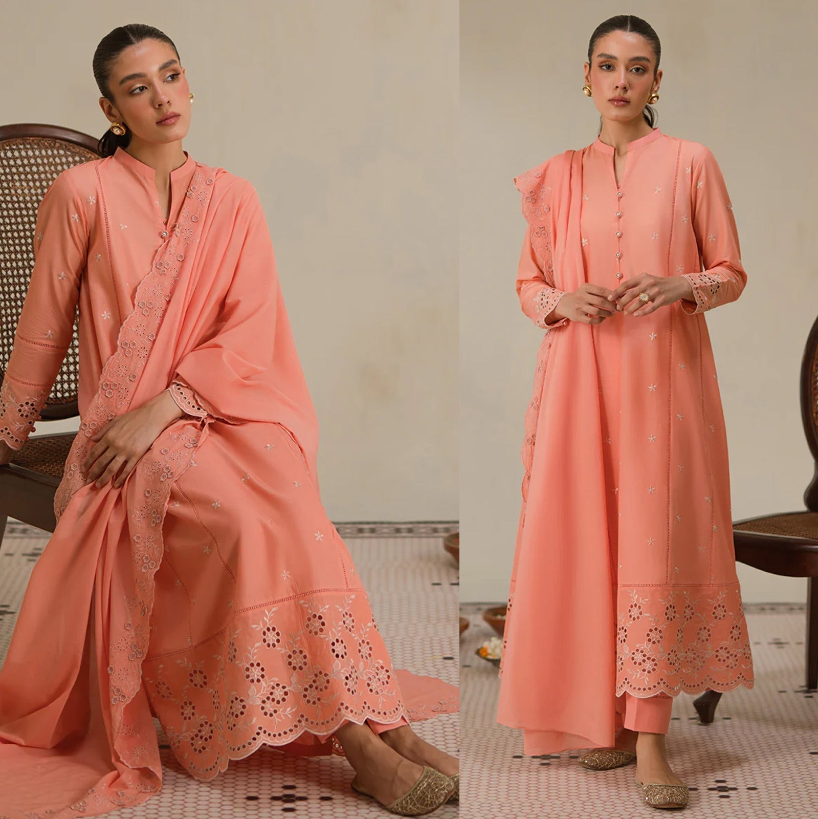 ShirtEmbroidered Lawn Chikankari Front with daman patchEmbroidered Lawn Chikankari SleeveDupattaEmbroidered Lawn Chikankari DupattaTrouserDyed Lawn trouser