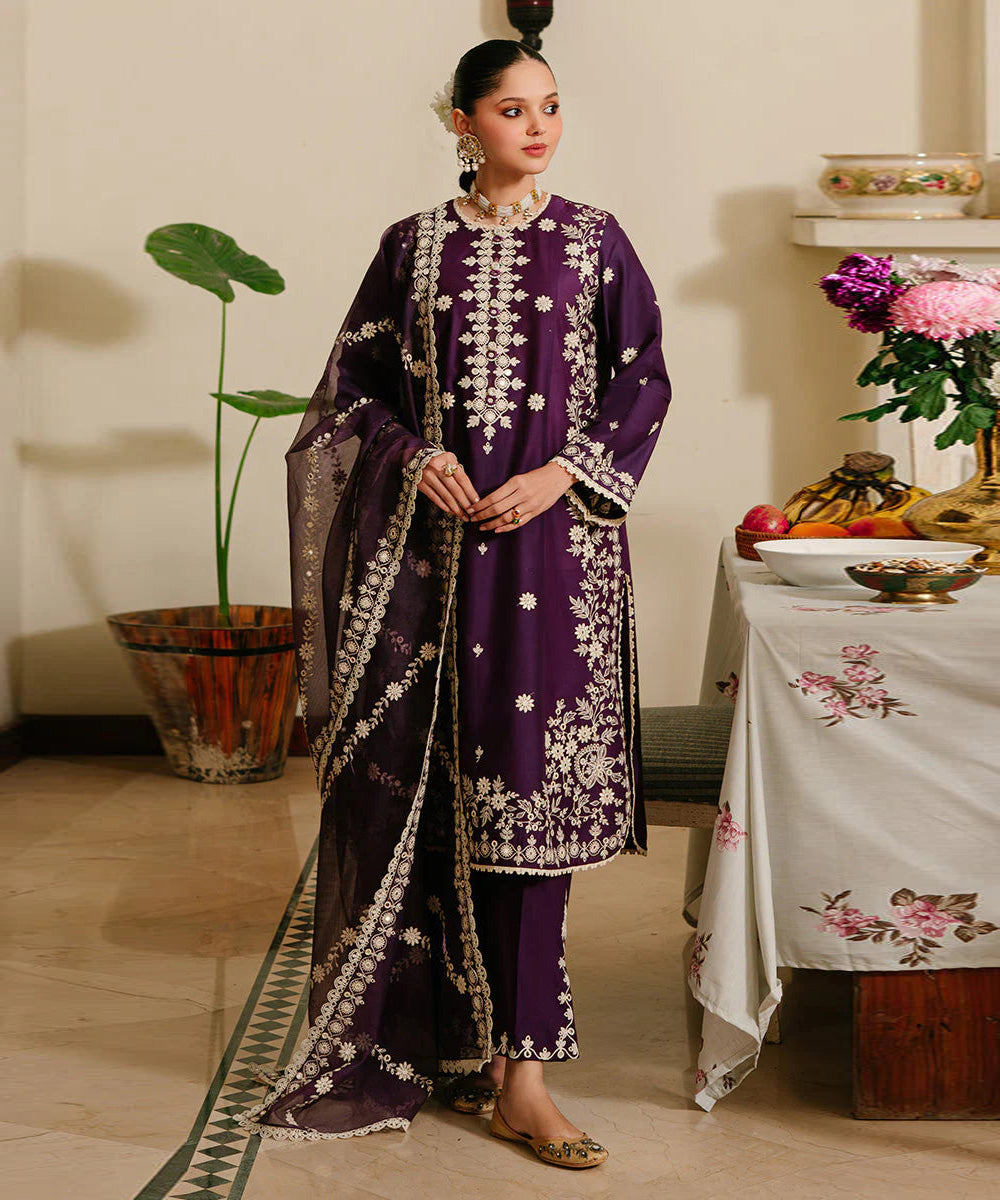 CROSS STITCH 3PC Lawn Embroidered With Organza Embroidered Dupatta-468