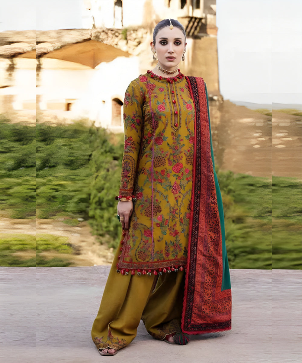 ShirtDhanak Fully Embroidered shirtDhanak Embroidered Sleeves DupattaDigital Printed Wool ShawlTrouserDhanak Embroidered TrouserDhanak Plain Back Side Disclaimer: Product Color May Slightly Vary Due to Photographic Lighting Sources or Your Monitor Settings