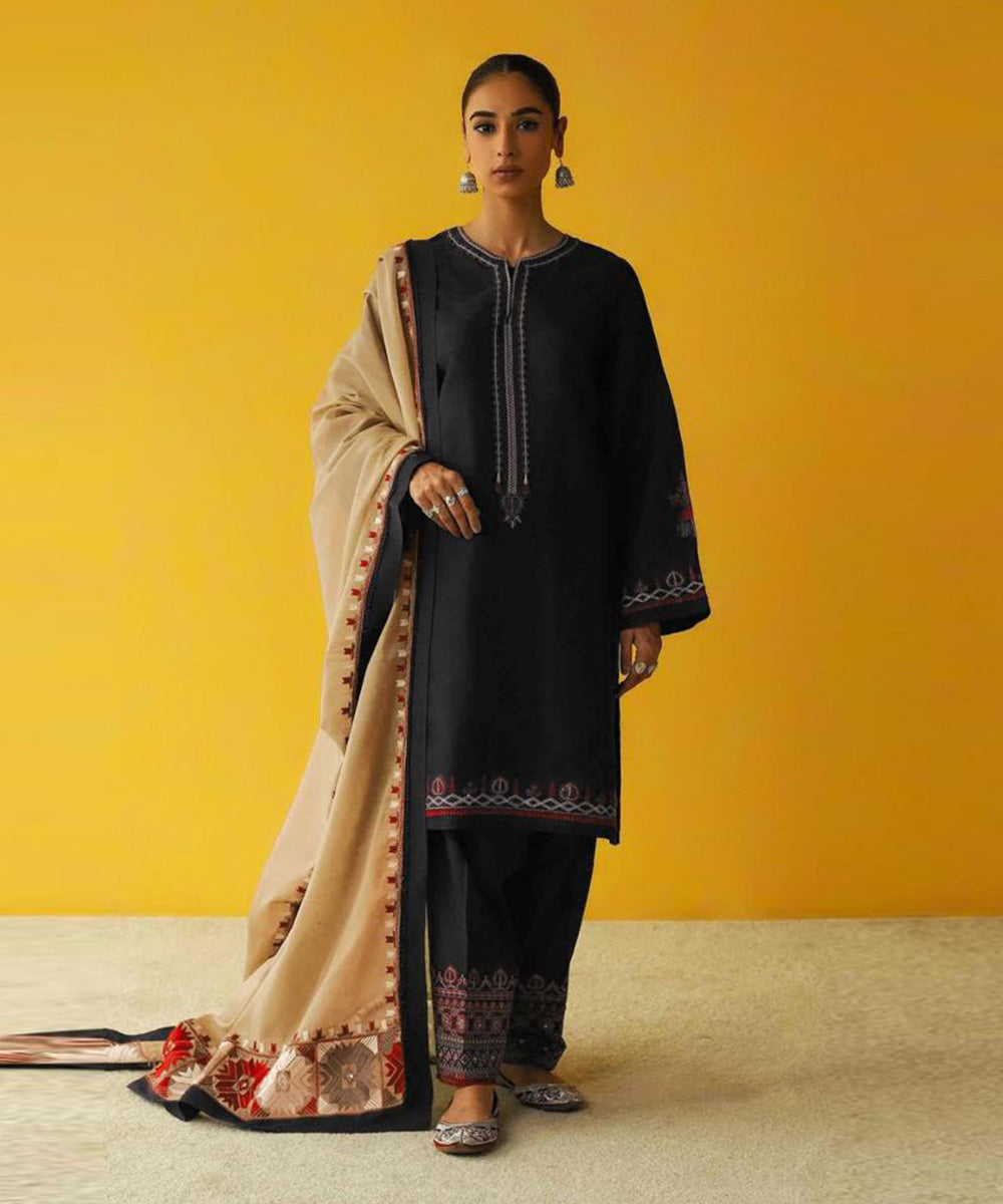 Dhanak Front EmbroideredDhanak Sleeves EmbroideredDhanak Dupatta EmbroideredDhanak Trouser Embroidered PatchDhanak Plain Dyed Back