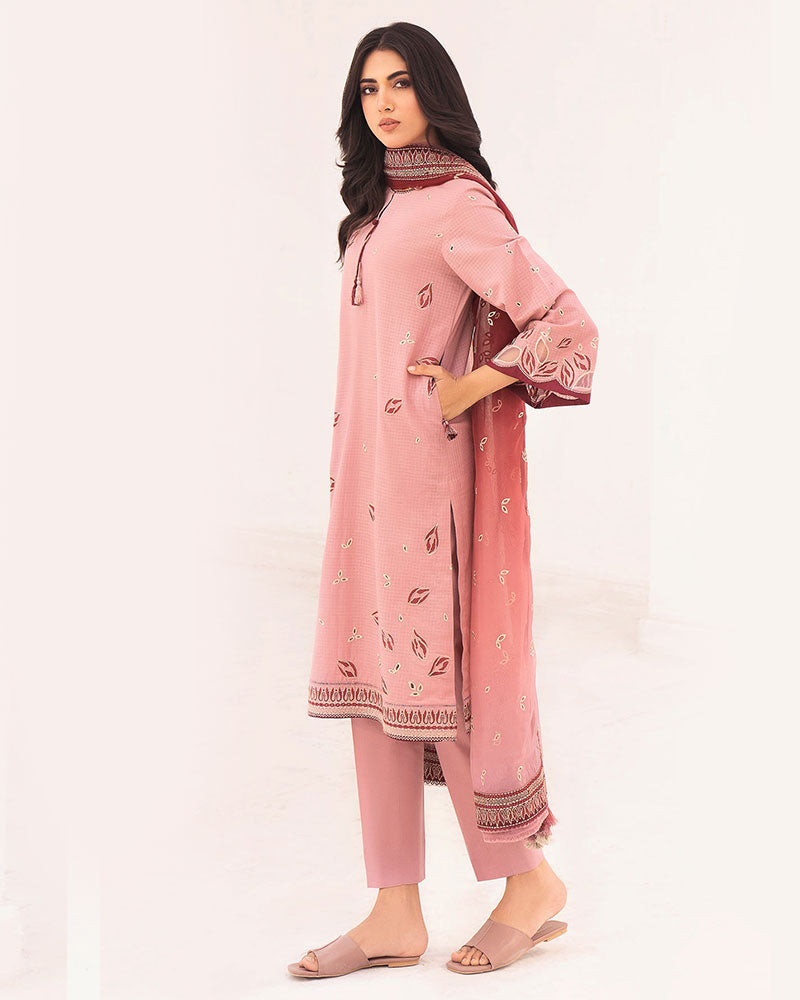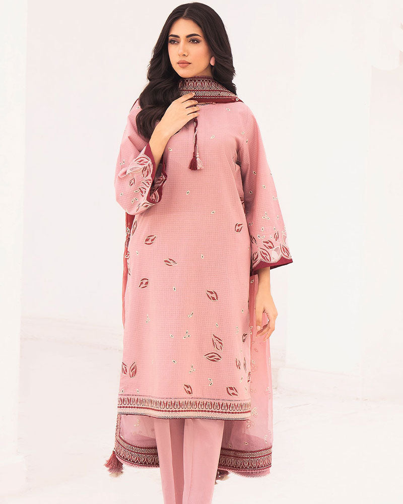 ShirtEmbroidered lawn FrontEmbroidered lawn SleevesDupattaOrganza Embroidered DupattaTrouserDyed cotton trouser