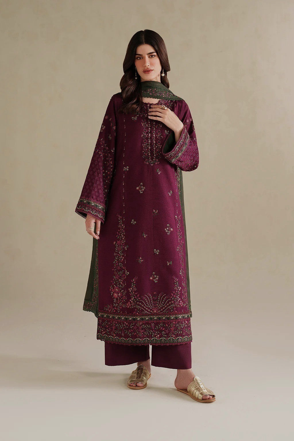 Shirt: Premium quality lawn fabric featuring elegant all-over embroidery with finely crafted embroidered patches