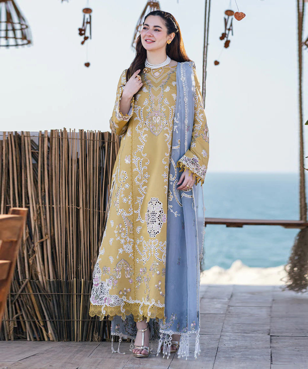 ShirtEmbroidered Lawn Chikenkari Front with daman patchEmbroidered Lawn Chikenkari SleeveDupattaEmbroidered Organza Dupatta With Embroidered PalluTrouserDyed Lawn trouser with Patch