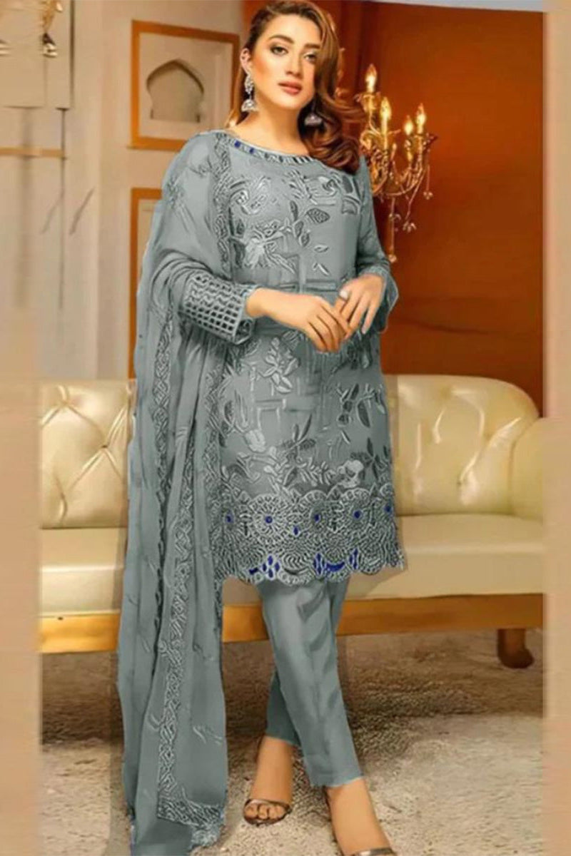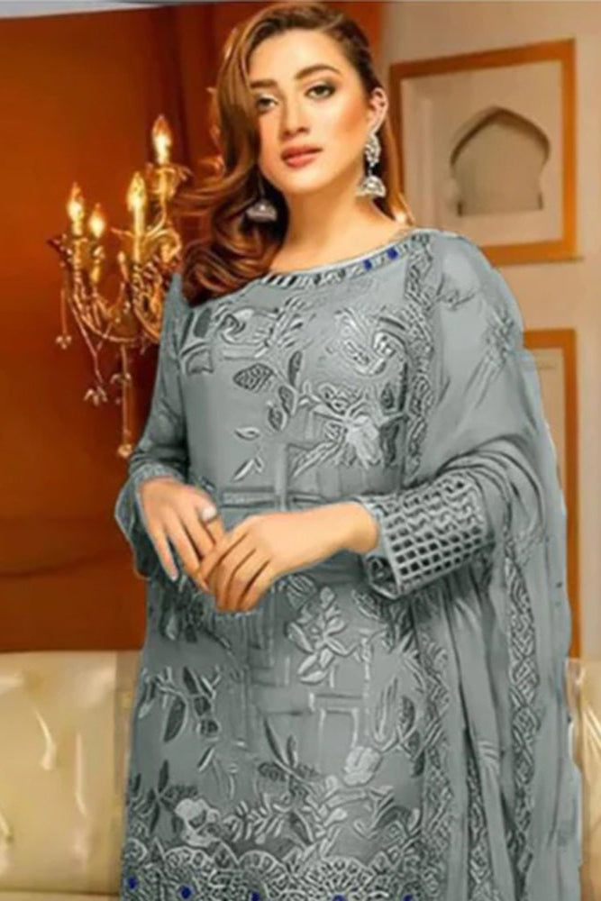 *Front Full Heavy Embroidered *Sleeves Heavy Embroidered *Plain Trouser *Bottom Embroidered Patch *Bamber Chiffon Heavy Embroidered Dupatta