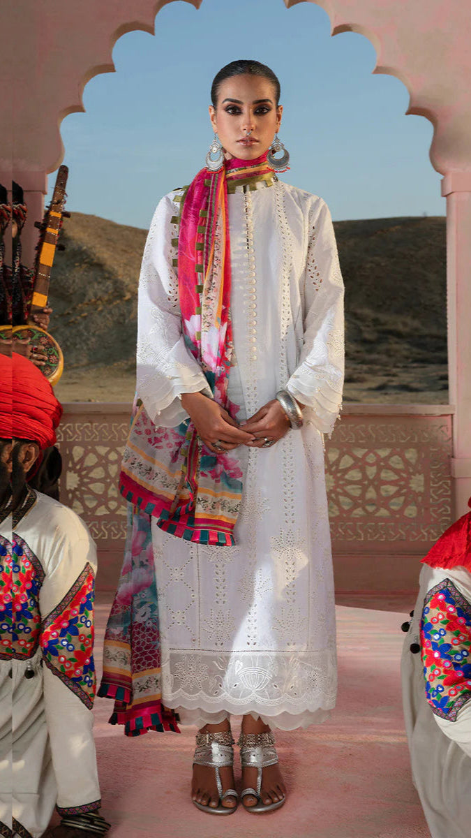Warda Saleem Dhanak 3PC Chikankari Embroidered With Digital Printed Wool Shawl-104