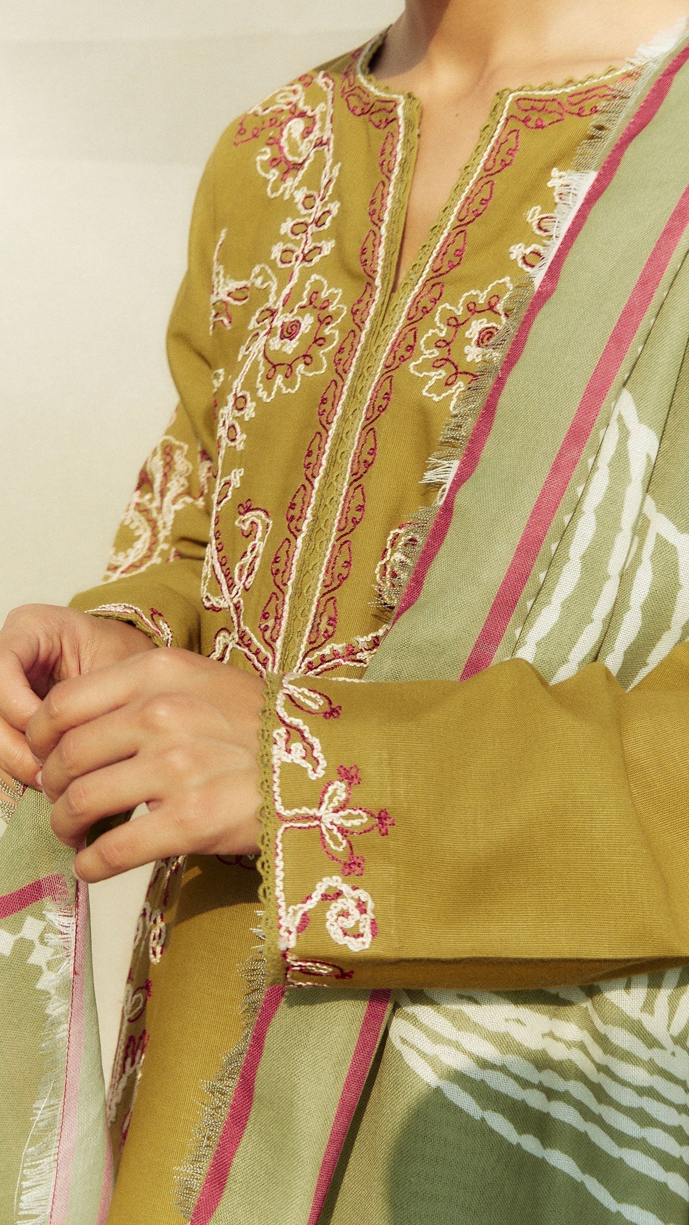 ZARA SHAHJAHAN 3PC Dhanak Embroidered Shirt With Digital Printed Shawl-271